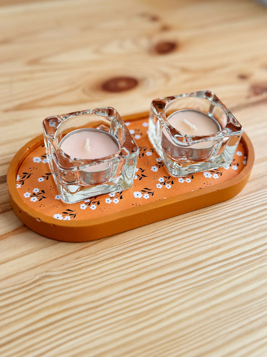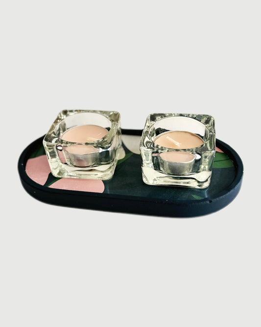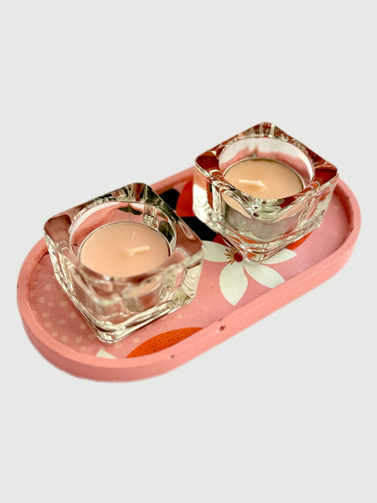 סט נרות ומגש מעוצב - פריחה חמימה